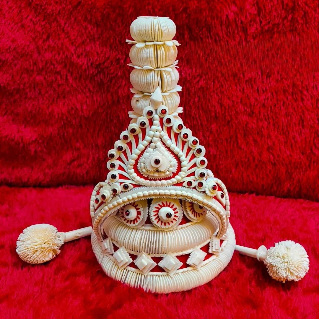 The Topor Mukut Set Classic A21 is a traditional Bengali wedding headgear set, specially designed for grooms to wear during sacred wedding rituals. This classic set includes a beautifully crafted Topor and Mukut, symbolizing purity, tradition, and cultural heritage in Bengali weddings.